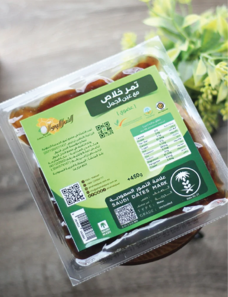 • المذاق والقوام: تمر خلاص بعين الجمل، قوام كريمي وملمس ناعم.